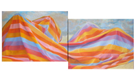 Traditionally a frame functions to separate a painting from its environment. In this series, I consider the frame of a painting as an integral part of it. In these, the landscape is less apparent as I zoom in closeup on the folds and drapery of the fabric. All are either oil on linen or cotton canvas and mixed mediums on a plywood base and are in two sizes. The smaller are approximately 20 x 18 x 2 inches deep; the larger are approximately 38 x 30 x 2 inches deep.